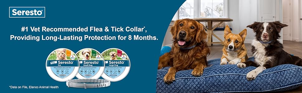 Recommended by veterinarians. Hated by fleas and ticks. Seresto® provides your pet with 8 months of hassle-free defense.